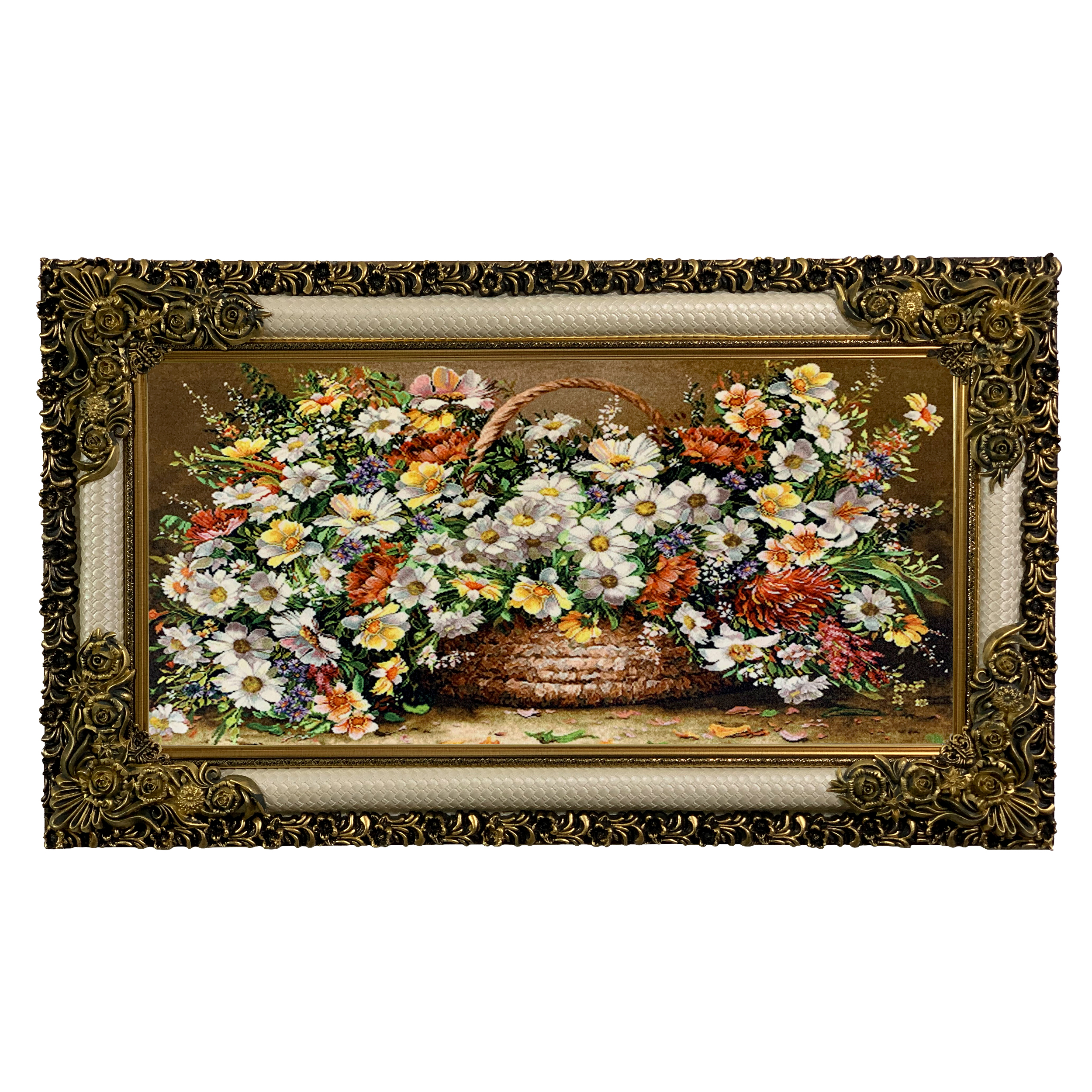 تابلو فرش ماشینی طرح سبد گل کد ۷۳۷۶